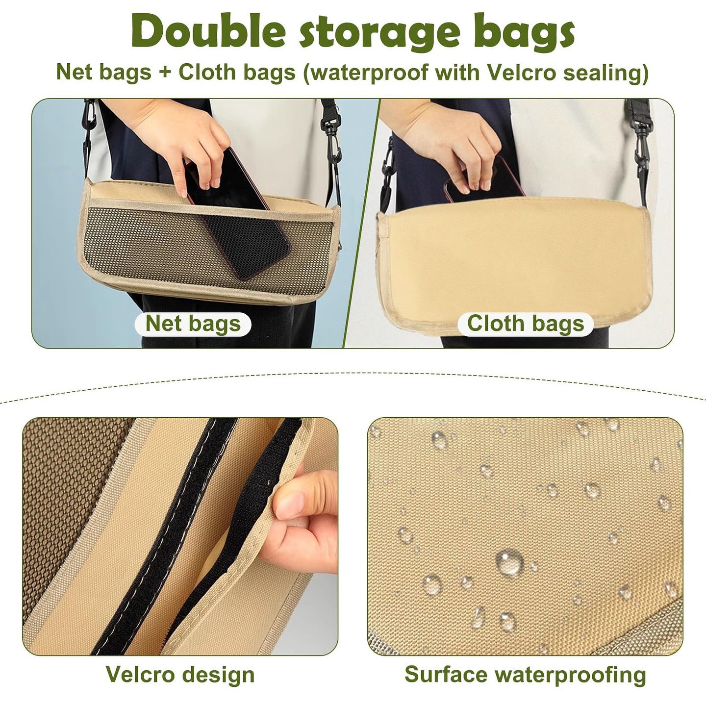 ✅ Double Storage Bags – One net pocket for phone or small items, and one cloth bag with Velcro closure for extra safety.